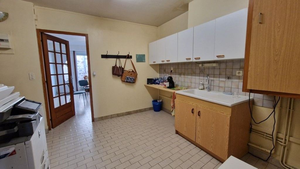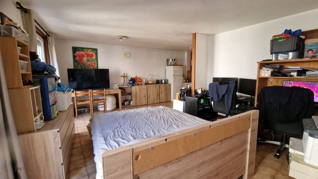 Au rez-de-chaussée, vous trouverez un appartement rénové d’environ 40 m², composé d’un séjour avec coin cuisine, une chambre, une salle d’eau et un WC. Ce logement est actuellement loué à usage de bureau.