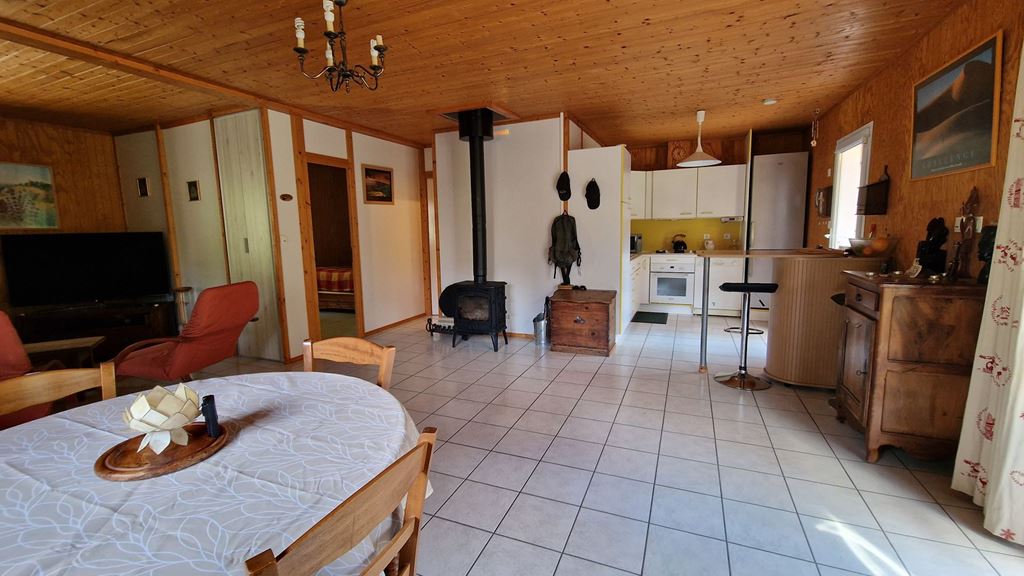Située dans un environnement verdoyant et paisible, cette charmante maison à ossature bois d'environ 90 m² vous offrira tout le confort dont vous avez besoin. Elle comprend une véranda, une cuisine équipée ouverte sur un agréable séjour , trois chambres, deux salles d'eau, des toilettes séparées, ainsi qu'un garage.