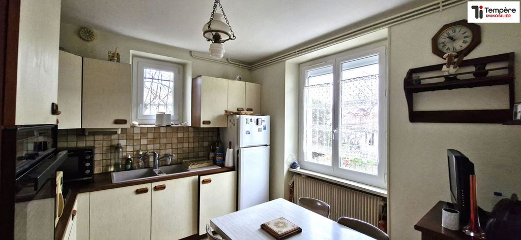 Elle se compose d'une cuisine séparée aménagée, d'un salon, d'un séjour, d'une salle d'eau et de 3 chambres à l'étage. Menuiseries pvc et volets roulants. Chauffage central gaz. Quelques travaux sont à prévoir.