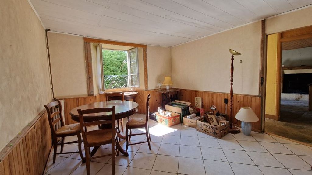Exclusivité – À Beaulieu, à proximité immédiate du centre-bourg, maison mitoyenne de caractère à rénover ,comprenant au rez-de-chaussée : une cuisine, un séjour, un salon, une buanderie, un cellier ainsi qu’une cave voûtée.