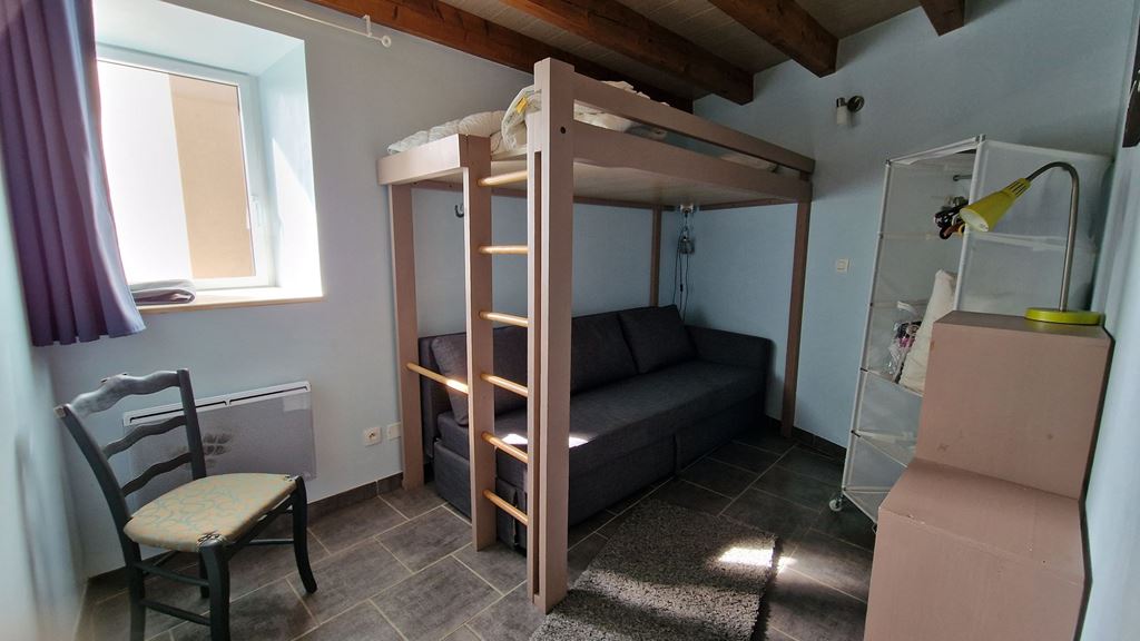 Vous y trouverez également une chambre, une salle d’eau et des toilettes.