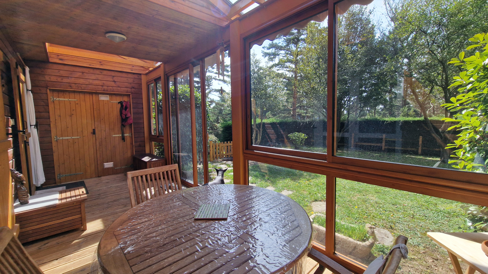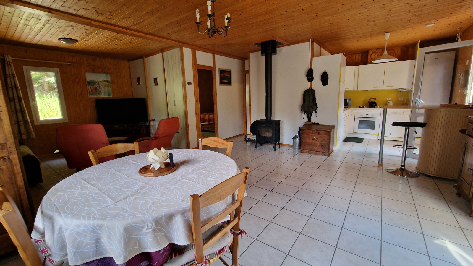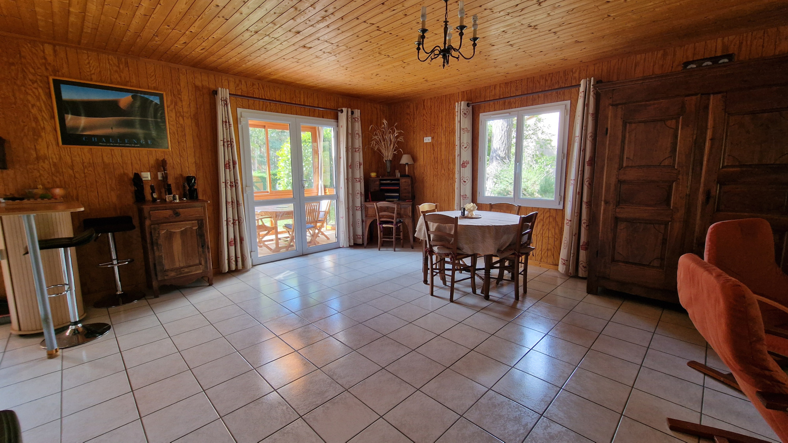 Située dans un environnement verdoyant et paisible, cette charmante maison à ossature bois d'environ 90 m² vous offrira tout le confort dont vous avez besoin. Elle comprend une véranda, une cuisine équipée ouverte sur un agréable séjour , trois chambres, deux salles d'eau, des toilettes séparées, ainsi qu'un garage.